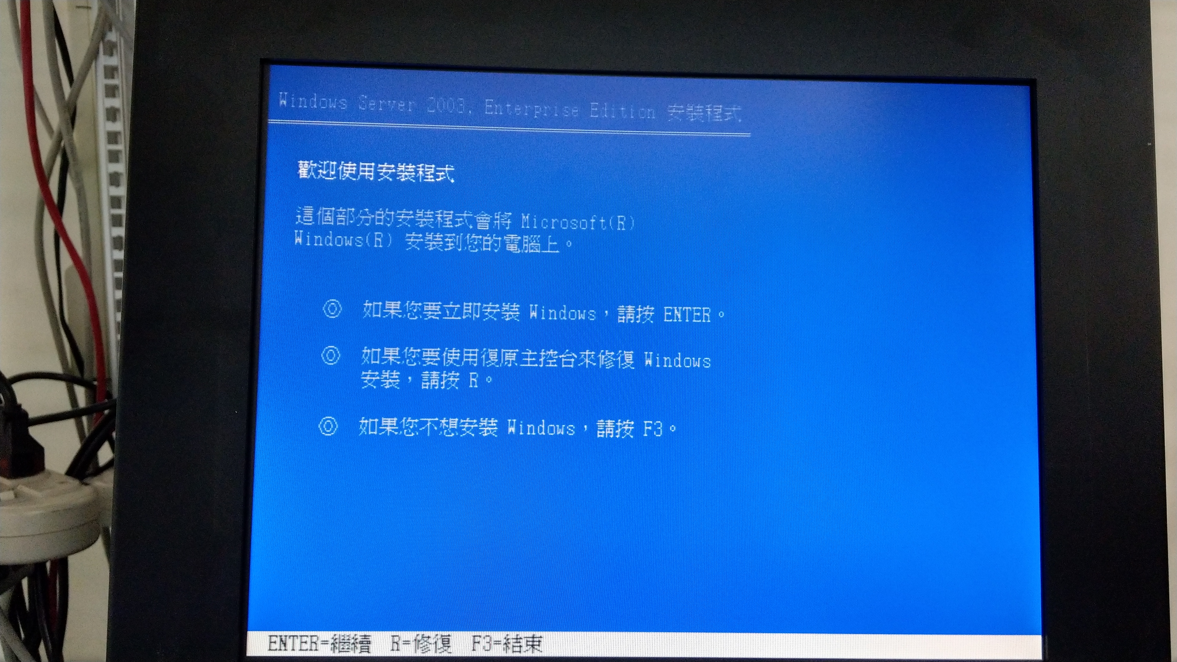 - 利用Windows Server 2003 R2 原廠光碟進入修復模式。